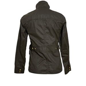 J. Crew Downtown Field utilitarian Jacket waxed cotton military gold buttons.