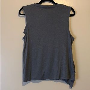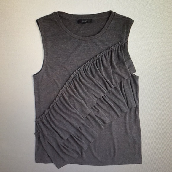 J. Crew tank top. A feminine take on a muscle tank with a flattering drape and oversized ruffle details. Plain back. Polyester, viscose knit. Approximate measurements: 18” across the armpits and 23” long. Excellent used condition with no signs of wear.