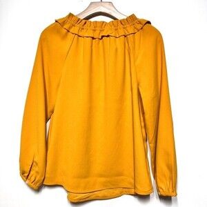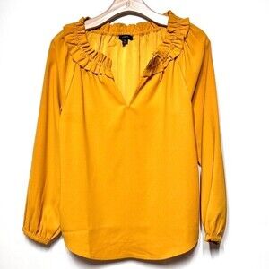 J. Crew Drapey Ruffleneck Top in 365 Crepe Blouse in Bronzed Ochre XS Like New C