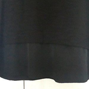 Black drapey tank top with silky hem from J. Crew. It features decorative trim on the bottom hemline and a keyhole cutout in the back.