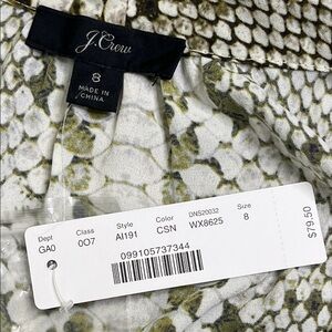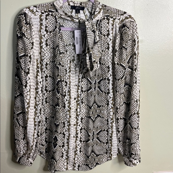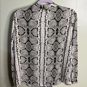 J. Crew Drapey tie-neck top in snakeskin print long sleeve blouse, size 8