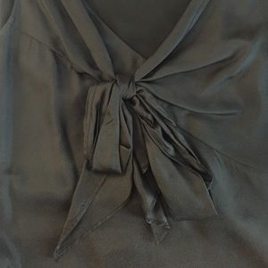 Short, black 100% silk dress. Side sipper bow in front. Super cute and flattering on.