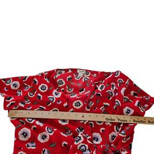 J. Crew Dress 8 Wrap Day Red Floral Poppy Print Short Sleeve Tie Belted Boho