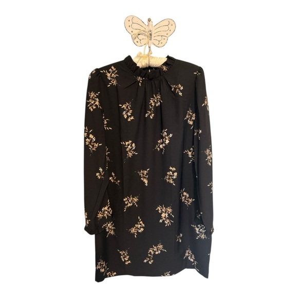 J. Crew Dress Esperanza Dress Black Floral Long Sleeves Ruffle Neck 14