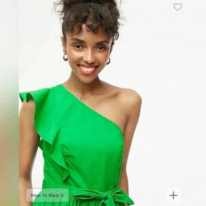 J Crew Dress Green One Shoulder Midi Dress NWT Size 6 Cotton Blend