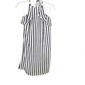 J. Crew Dress Halter Striped Ruffle Mini Navy White Size XS NWT