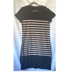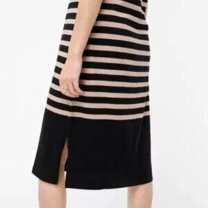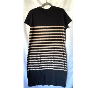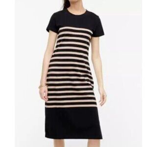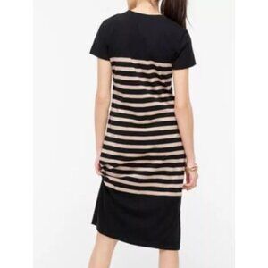J Crew Dress Large Black T Shirt Short Sleeve Crew Neck Striped Cotton Midi