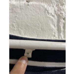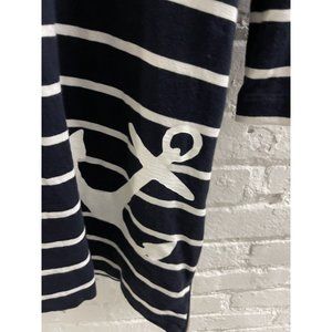 J Crew Dress Navy Blue White Cotton Blend Striped Long Sleeve Anchor Medium