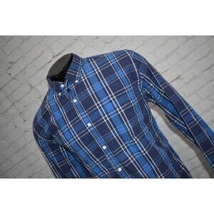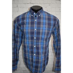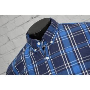 J Crew Dress Shirt Button Up Men Size XL Blue Plaids Cotton