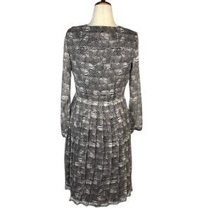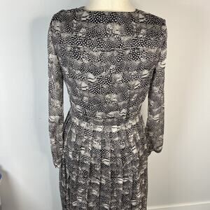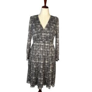 J. Crew Dress Size 10 Tall 100% Silk Grey Feather Print Pleated Long Sleeve