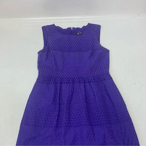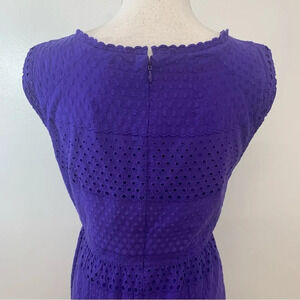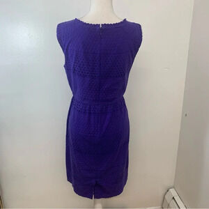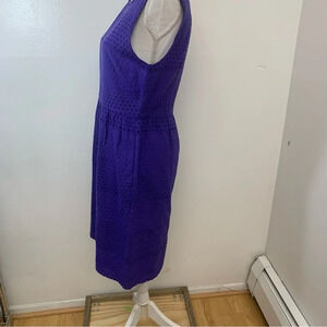 J Crew Dress Size 4 Purple Eyelet Knee Length Sleeveless Sheath Pockets Cotton
