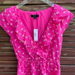 J. Crew Dress V-Neck Ruffle Mini Floral Faux Wrap Cap Sleeve Pink Size 00 NWT