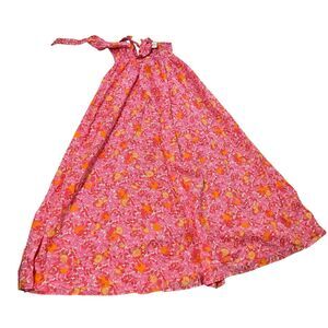J Crew Dress WMNS M Pink Plunge Cover up limone Fruits Lightweight Open Back NEW Tropical Resortwear Hawaiian Floral Oranges Beach Vacation