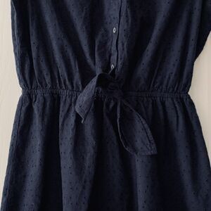 J Crew Dress Women XS Blue Eyelet Tie Front Button Up Preppy Nautical Resortwear