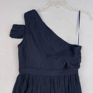 J.Crew Dress Womens 10 Navy Blue Silk Chiffon Cara One Shoulder Draped Event