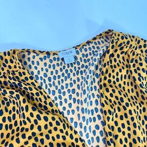 J. Crew Dress Womens 12 Yellow Black Drapey Twill Surplice Wrap Mini Printed