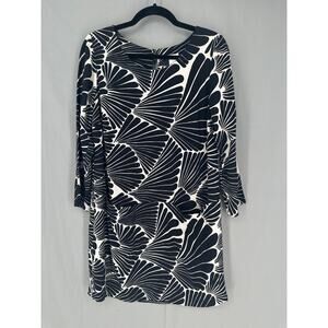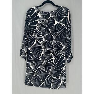 J Crew Dress Womens 4 Black Mini Shift Long Sleeve Abstract Flowy Boho Office