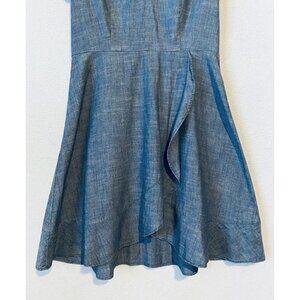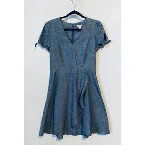 J Crew Dress Womens 4 Blue Chambray Faux Wrap Ruffle V Neck Cotton Boho