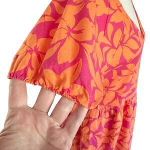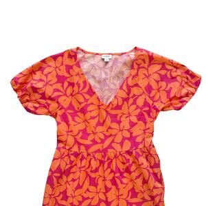 J Crew Dress Womens 4 Pink Orange Floral V Neck Puff Sleeve Tiered Midi dress