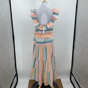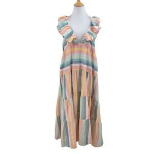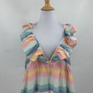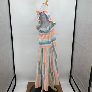 J Crew Dress Womens XL Extra Small Multi Cotton Tiered Ruffle Stripe Beach Cover