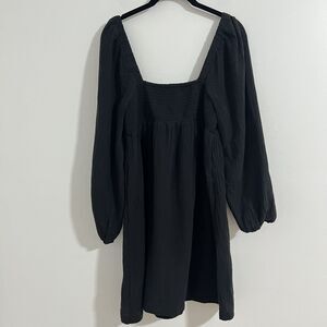 J Crew Dress Womens Extra Small Black Square Neck Long Sleeve Gauze Cotton Casual