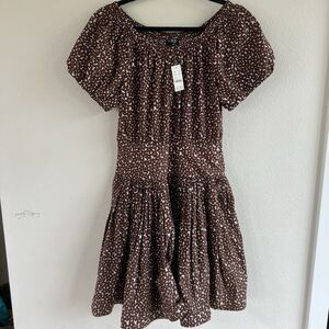 J. Crew Drop-waist cotton poplin mini dress in mocha floral Women’s Size 4