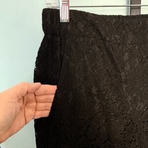 These easy to pull on pants are perfect for the holidays, parties and special events! The all over floral lace pants with an eyelash hem can go with anything from t-shirts and flats to silk halter top and heels, plus everything in between! Functional off seam diagonal pockets, welt back pockets and fully lined. In excellent used condition