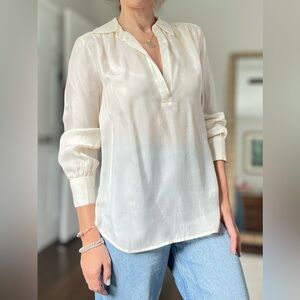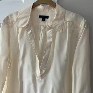 J. Crew Eco cupro-blend collared V-neck popover top. Size small. Very good condition, small tear at bottom of V- neck. Hard to notice. Easy to fix.