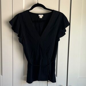J. Crew Elegant Black Cap Sleeve Blouse | 6