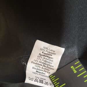 Sophisticated black pea coat featuring a luxurious faux fur trim. Includes practical front pockets and a refined silhouette.
