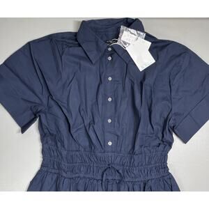 J Crew Elena Mini Shirt Dress in Cotton Poplin Size 4 Navy Blue Smocked Waist