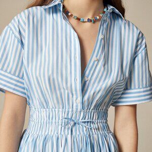 J. Crew Elena mini shirt-dress in striped cotton poplin Blue & White Size 14 NWT