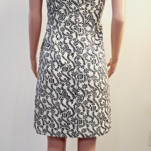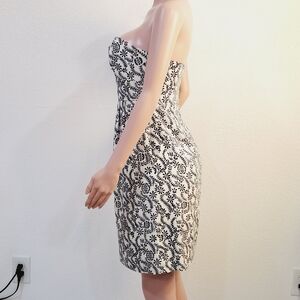 J. Crew Ella Strapless White & Black Floral Shift Cotton Blend Dress Size: 6
