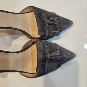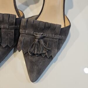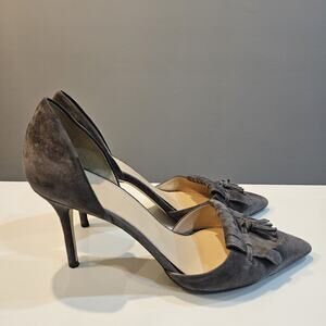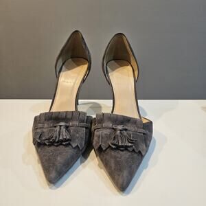 J. Crew Elsie D'Orsay Pump Heels Size 9 Grey Suede Fringed Tassels Pointed Toes
