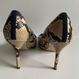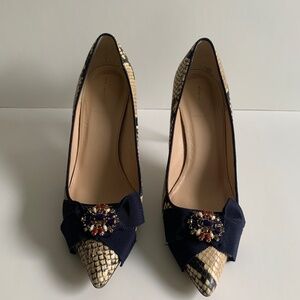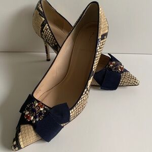 J. Crew Elsie Heel in Snake Embossed Leather with Bow, Pointy Toe Size 8.5
