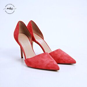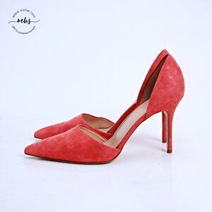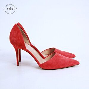 J. Crew Elsie Leather Pointed Toe Heel Pumps Orange Red Women 8.5