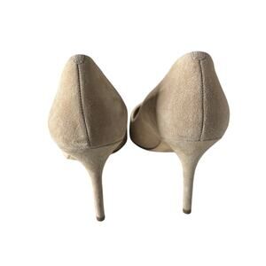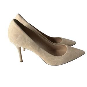J.Crew Elsie Suede Pumps in Natural. Size 8.5. Features pointed toe, stiletto heels, suede upper, leather lining and sole, and slip-on. Excellent condition with normal signs of wear on upper and soles.