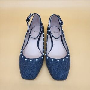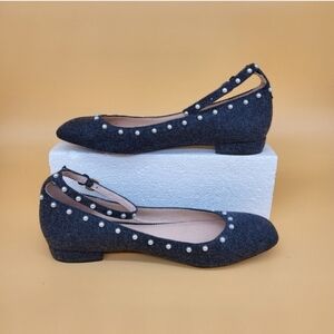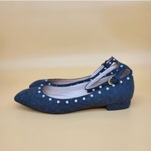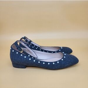 J. Crew Embellished Wool Dark Gray Ankle Strap Ballet Flats Size 9