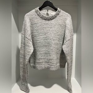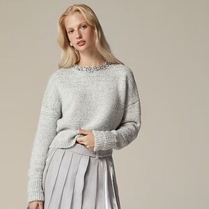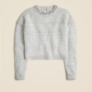 J Crew Embellished pullover sweater light grey silver metal Large NEW Gems