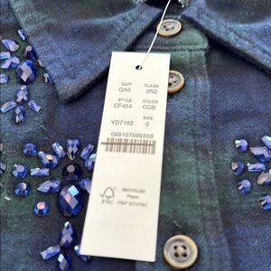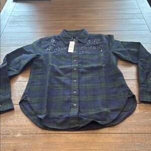 J. Crew Embellished shrunken button-up shirt in tartan brushed cotton Size 0