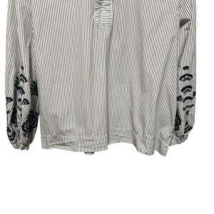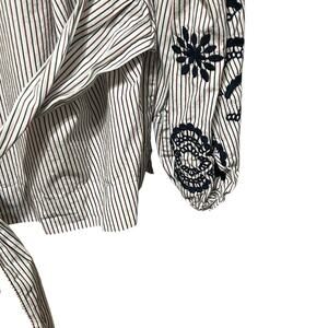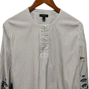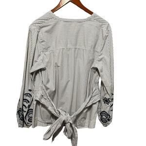 J.Crew Embroidered Stripe Blouse Tie Back Top L Cottagecore Prairie Boho Feminine