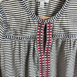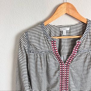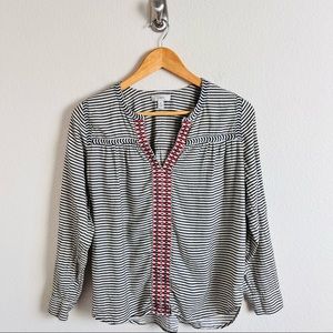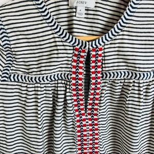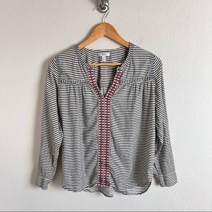 J. Crew Embroidered Embellished Cream Striped Long Sleeve Blouse