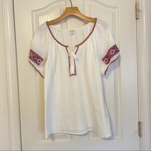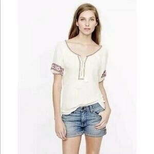 J. Crew Embroidered Gauzy Split Neck Boho Top Size small