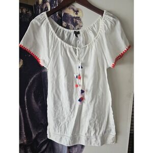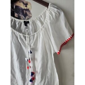 J Crew Embroidered Linen Cotton Pom Pom Cover Up Tunic White XXS G4021
