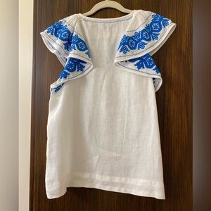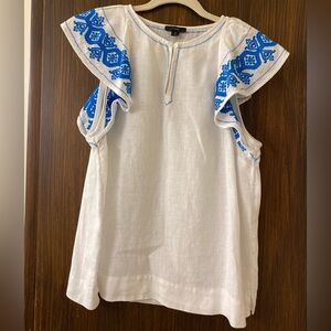 Beautiful white 100% linen top with embroidered sleeves and keyhole neckline. no flaws. Size: M. Approx length: 25" Chest: 40"