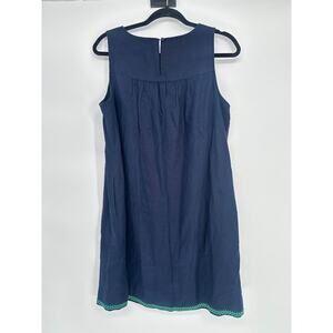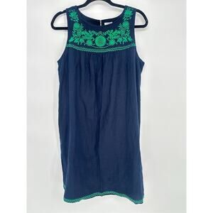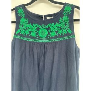 J. Crew Embroidered Linen-Blend Shift Dress Size M Sleeveless Boho Navy Green
