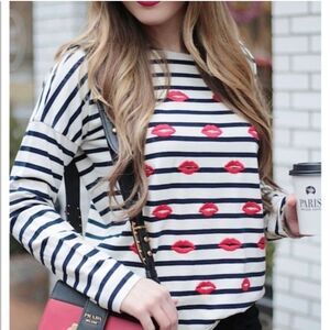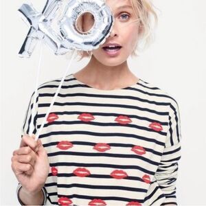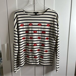 J. Crew Embroidered Lips Striped Long Sleeve Top Size Small