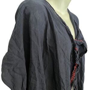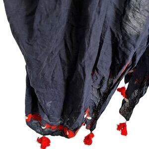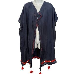 J Crew Embroidered Navy Red Tassel Boho Kimono Open Jacket Longline Sheer O/S