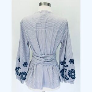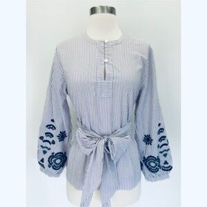 J. Crew • Embroidered Tie-Front Stripe Tunic Blouse Top
