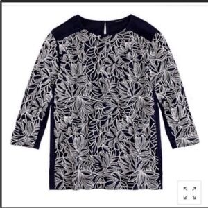 J Crew Embroidered wildflower top Size Small Navy blue & White